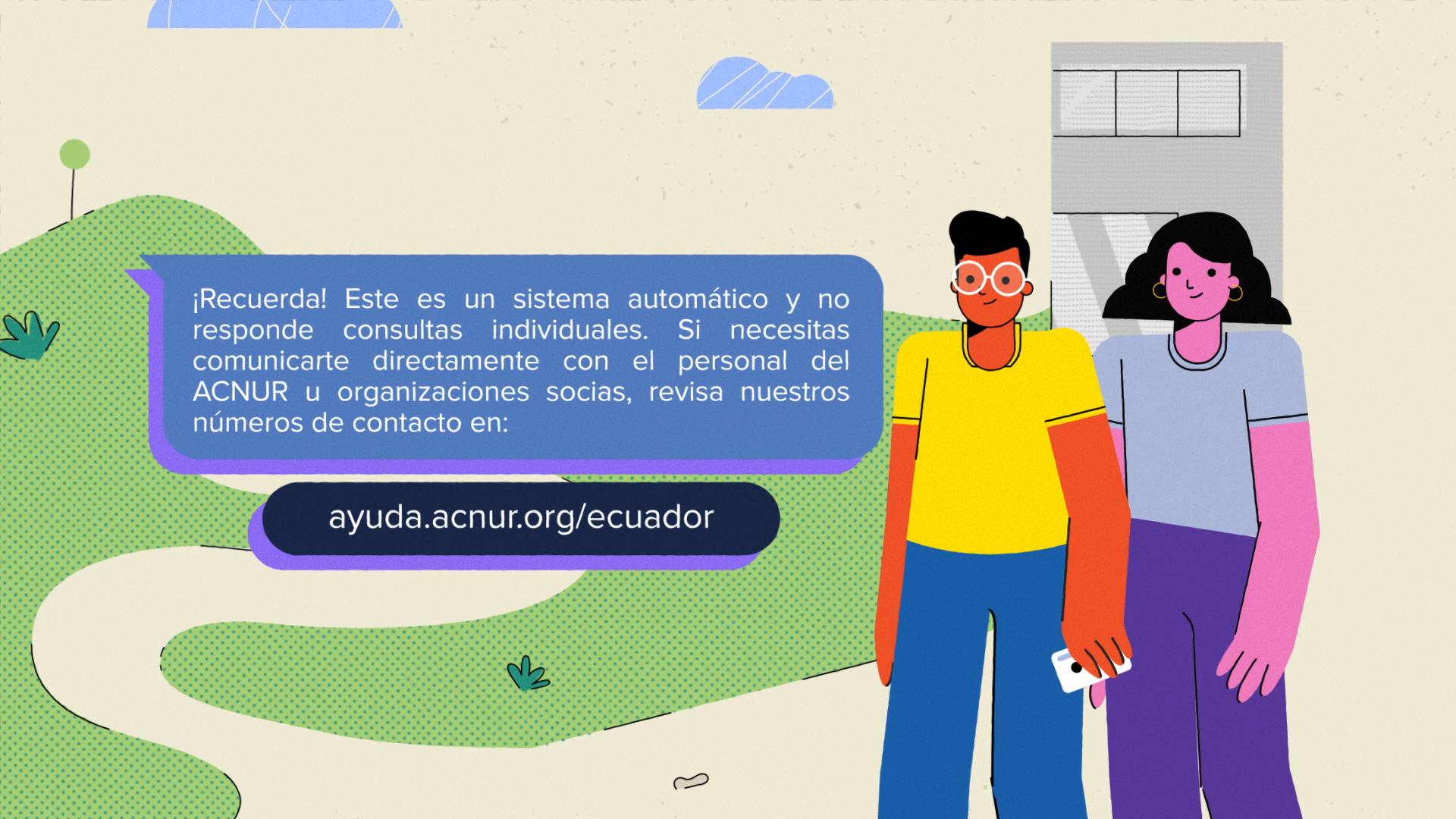 The video is about the functioning of the chatbot that provides information to refugees in Ecuador.
