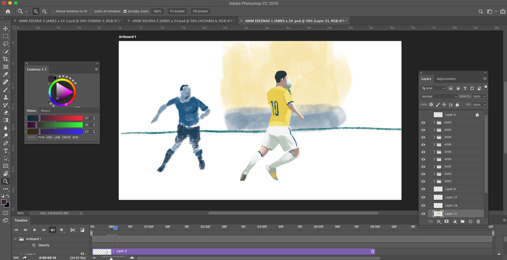 Project collaboration done with animator (Ivan Casal) first commercial rotoscope done frame by frame on Adobe Photoshop